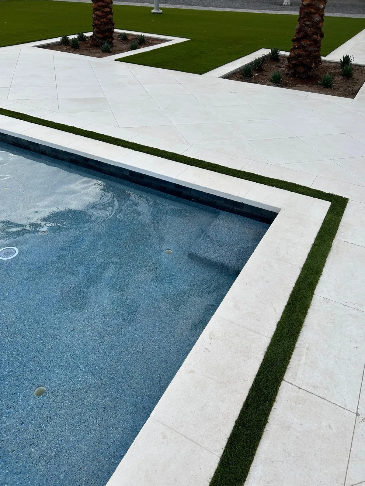 Modernize your pool. Remove old decks, tile, and coping. Add spas, baja shelves, tables, sunken bars, firepits. Finish with travertine, pavers, or turf.